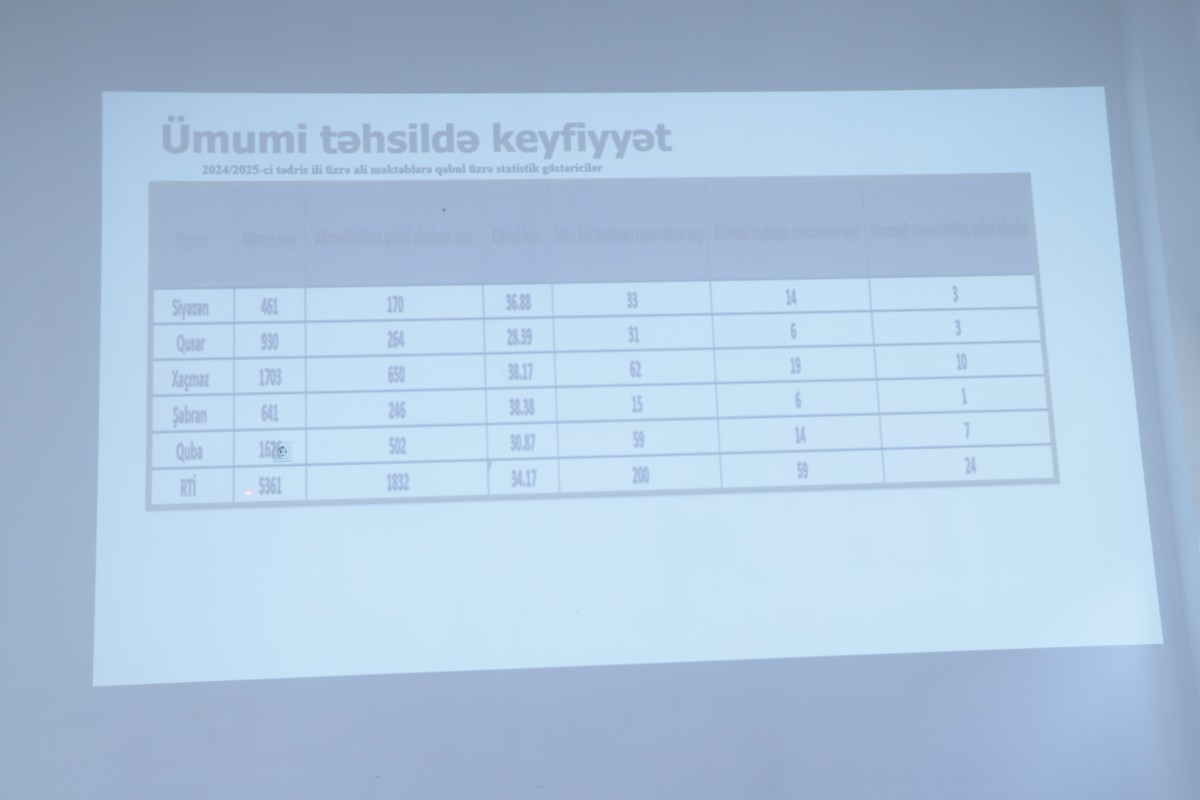 Tədbirdə Quba-Xaçmaz Regional Təhsil İdarəsinin müdiri Coşqun Əliyev, idarənin digər rəhbər şəxsləri, rayon təhsil sektor müdirləri və ümumi təhsil müəssisələrinin direktorları iştirak ediblər.